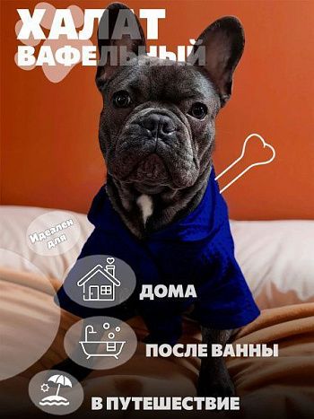 Халат для собак вафельный темно-синий