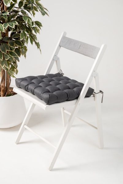 Подушка для стула "ЛОФТ" с лузгой гречихи темно-серая с завязками