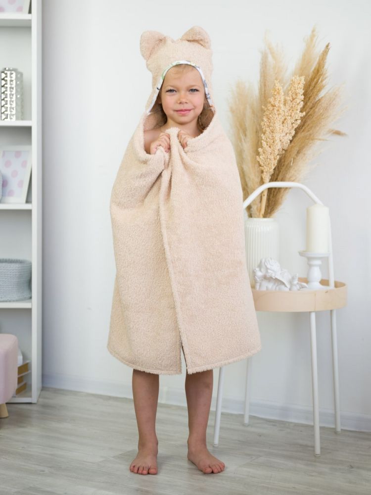 Накидка детская с капюшоном "КОТИКИ" 110*70 см, бежевый