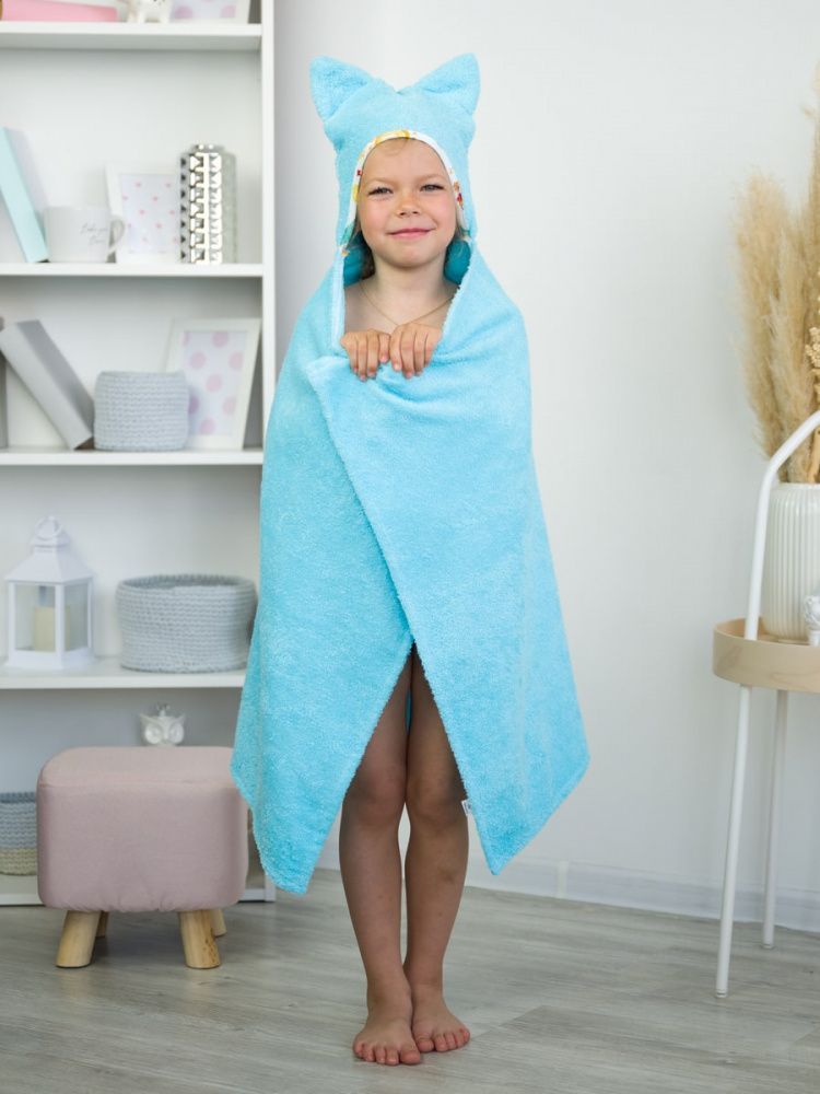 Накидка детская с капюшоном "КОТИКИ" 110*70 см, лазурный