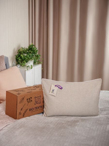 Подушка "Сила природы" с лузгой гречихи, лен + с запахом лаванды