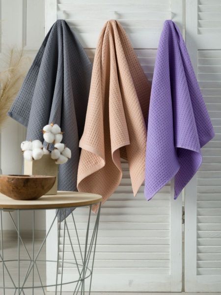 Набор вафельных полотенец 3 шт (50*90) сиреневый, серый, бежевый