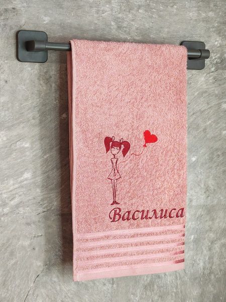 Полотенце с вышивкой 50*90 "Василиса" розовое