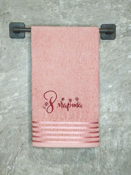 Полотенце с вышивкой "8 марта" розовое