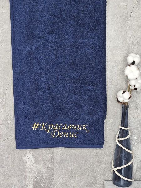 Полотенце с вышивкой 70*140 "красавчик" Денис темно-синее
