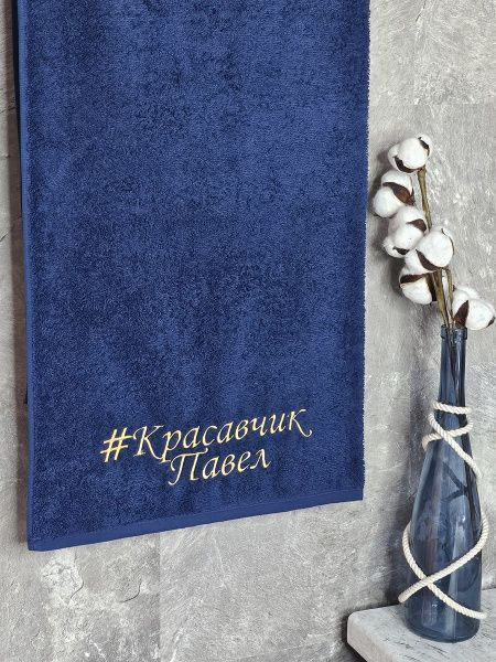 Полотенце с вышивкой 70*140 "красавчик" Павел темно-синее