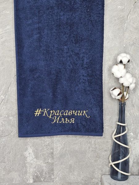 Полотенце с вышивкой 70*140 "красавчик" Илья темно-синее