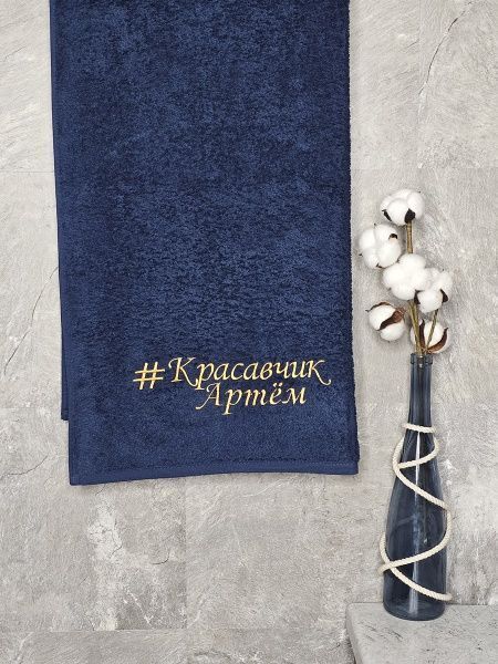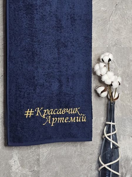 Полотенце с вышивкой 70*140 "красавчик" Артем темно-синее