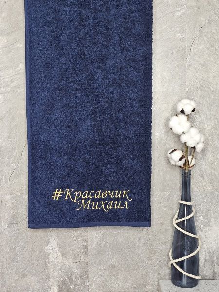 Полотенце с вышивкой 70*140 "красавчик" Михаил темно-синее
