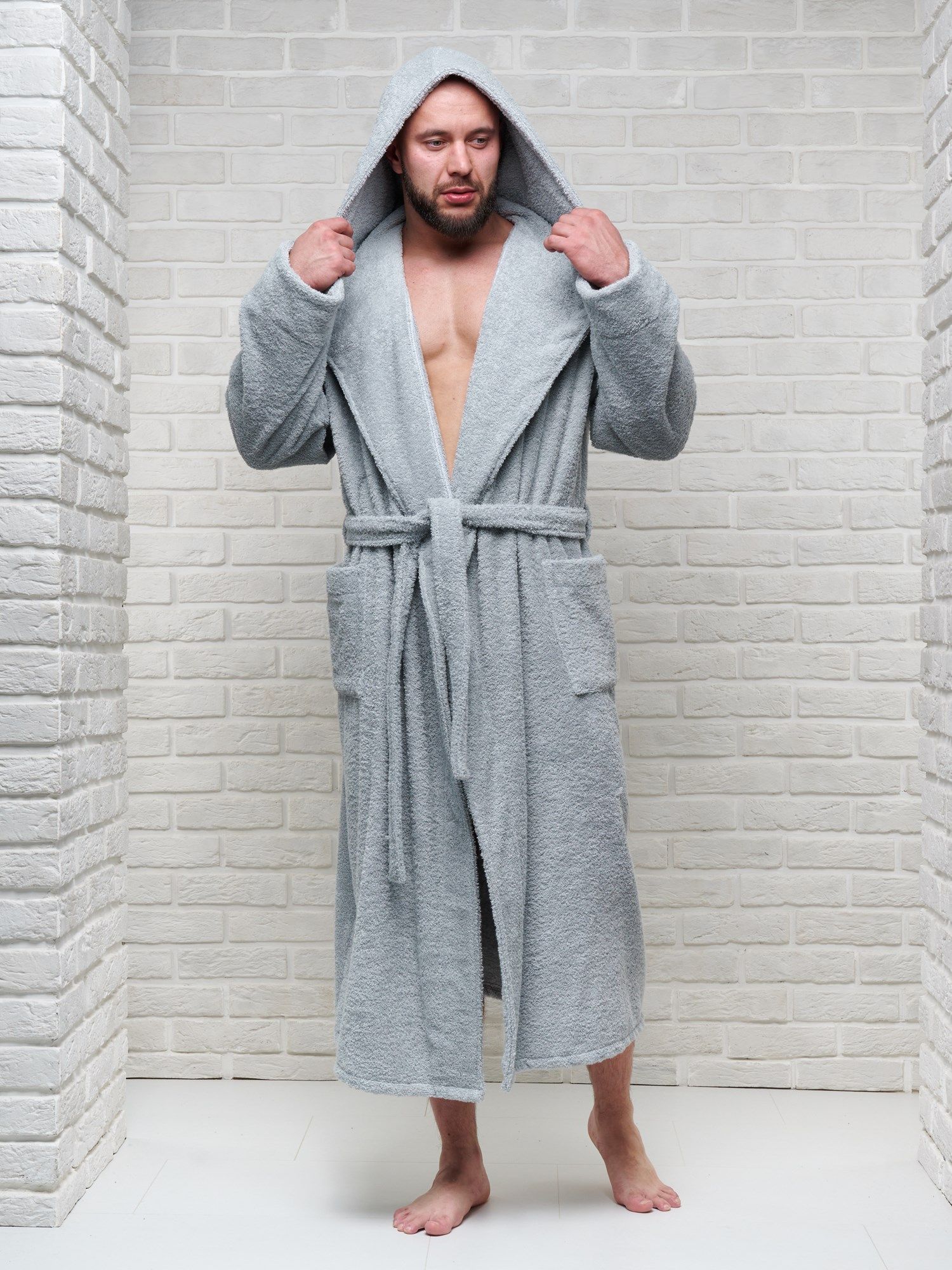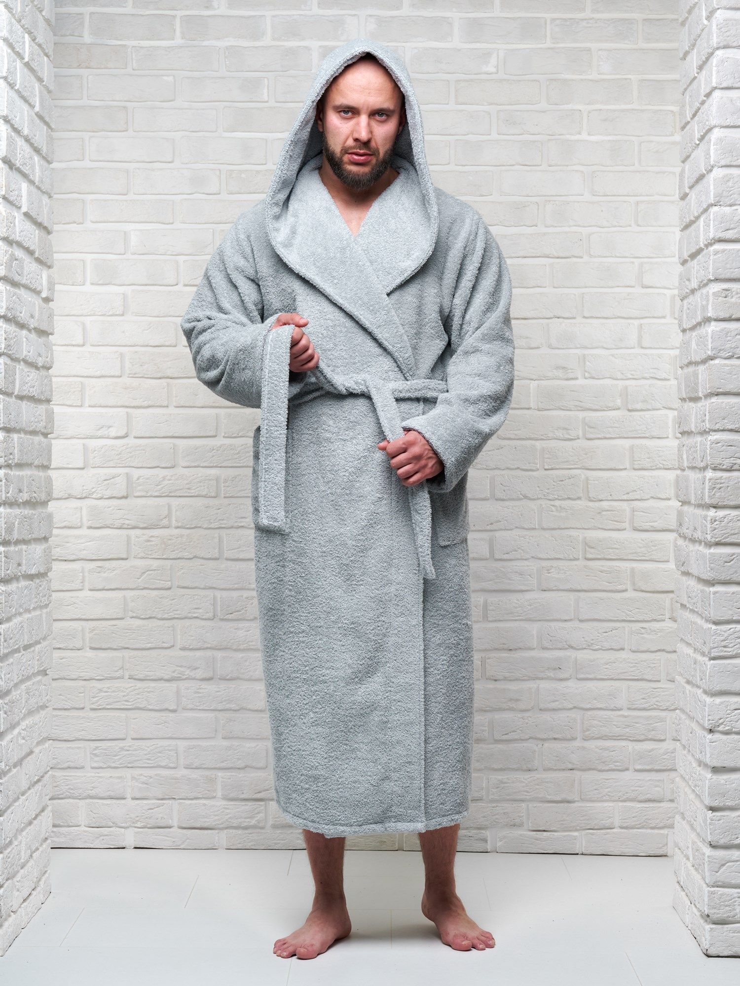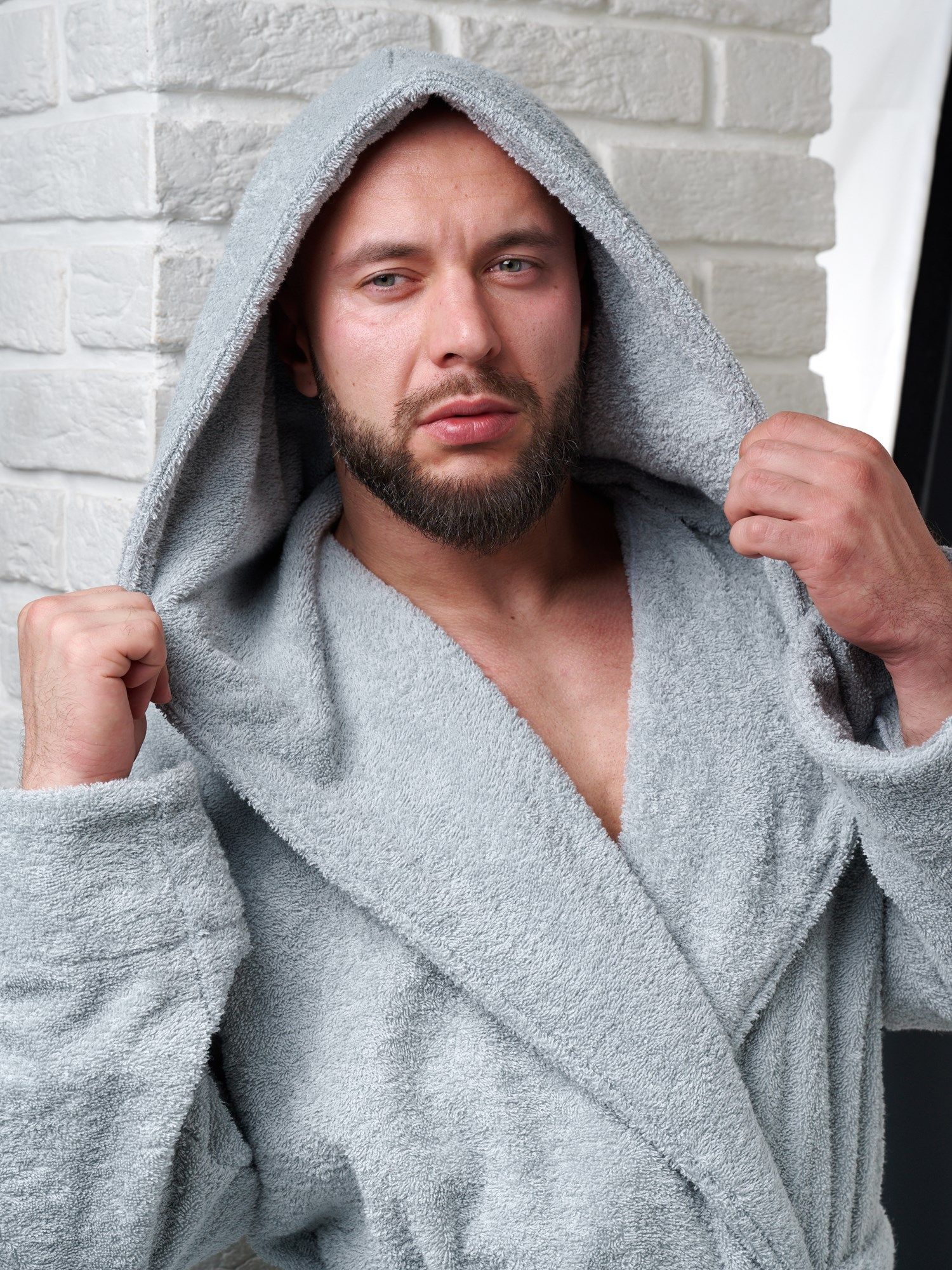 Халат мужской махровый PandaHug с капюшоном, светло-серый