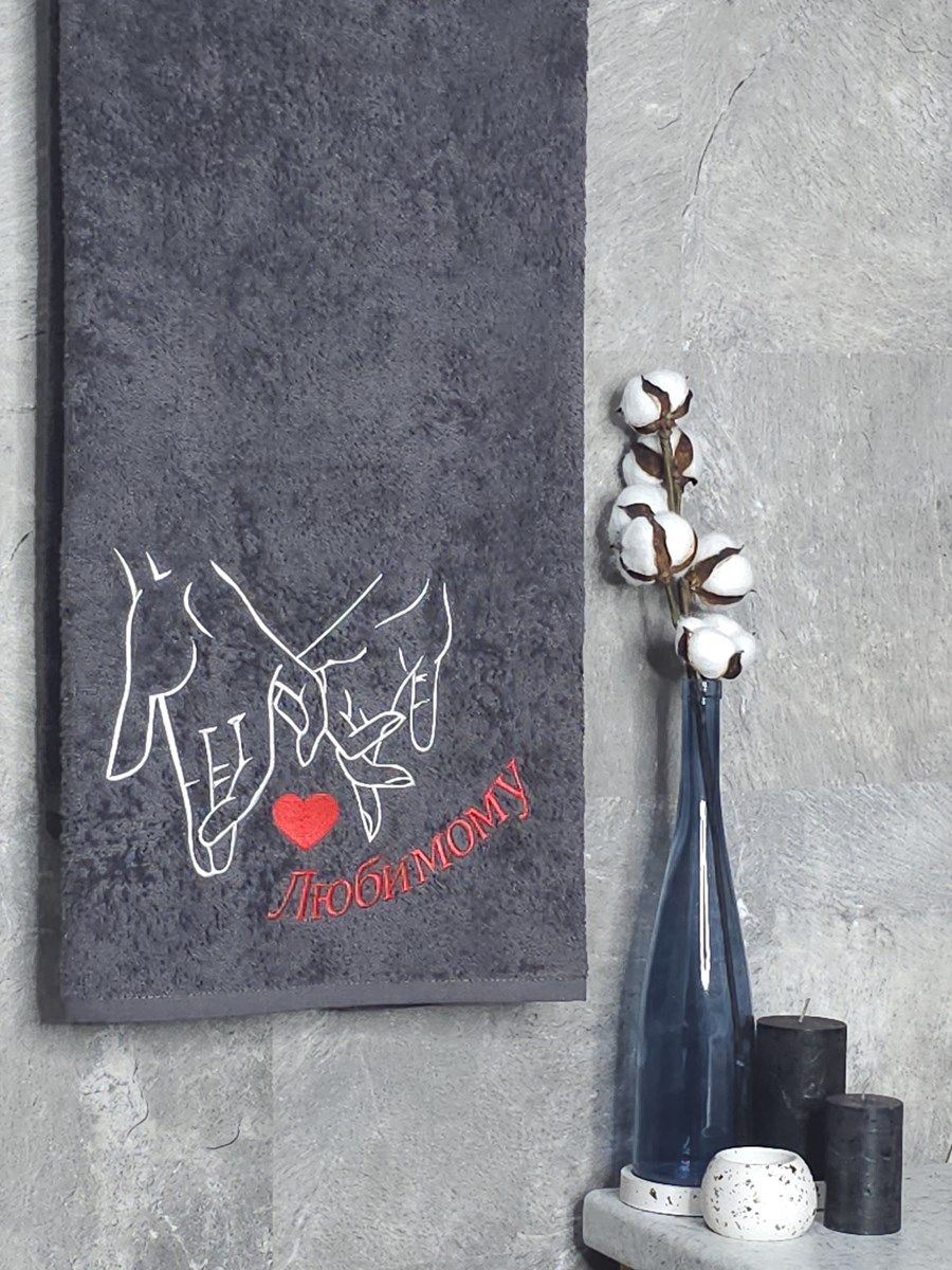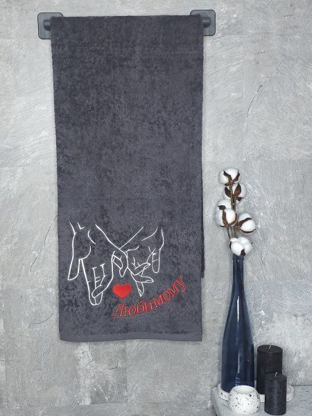 Полотенце с вышивкой 70*140 "любимому" темно-серое без бордюра POL/любимому/234