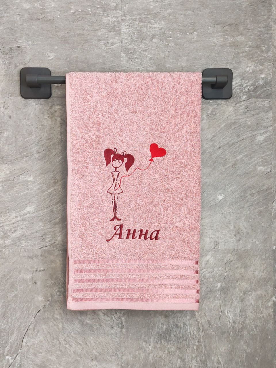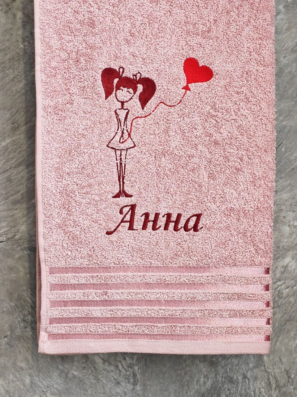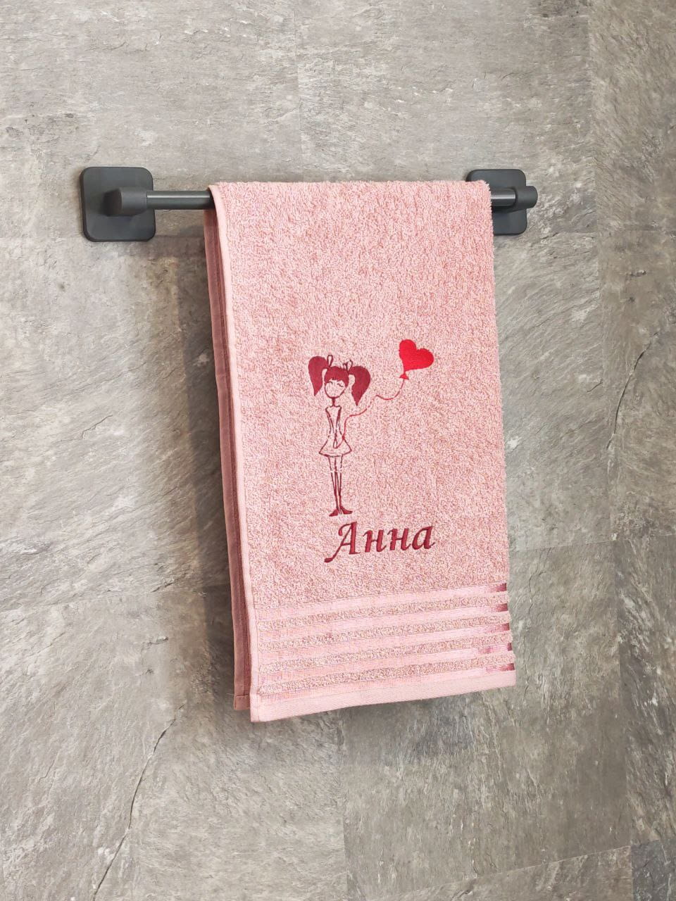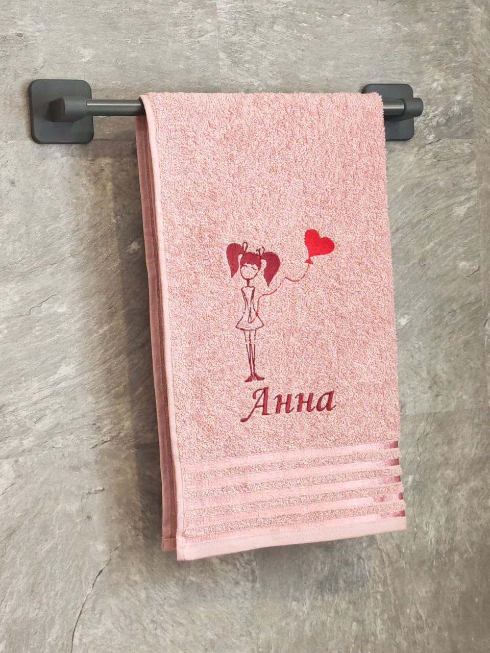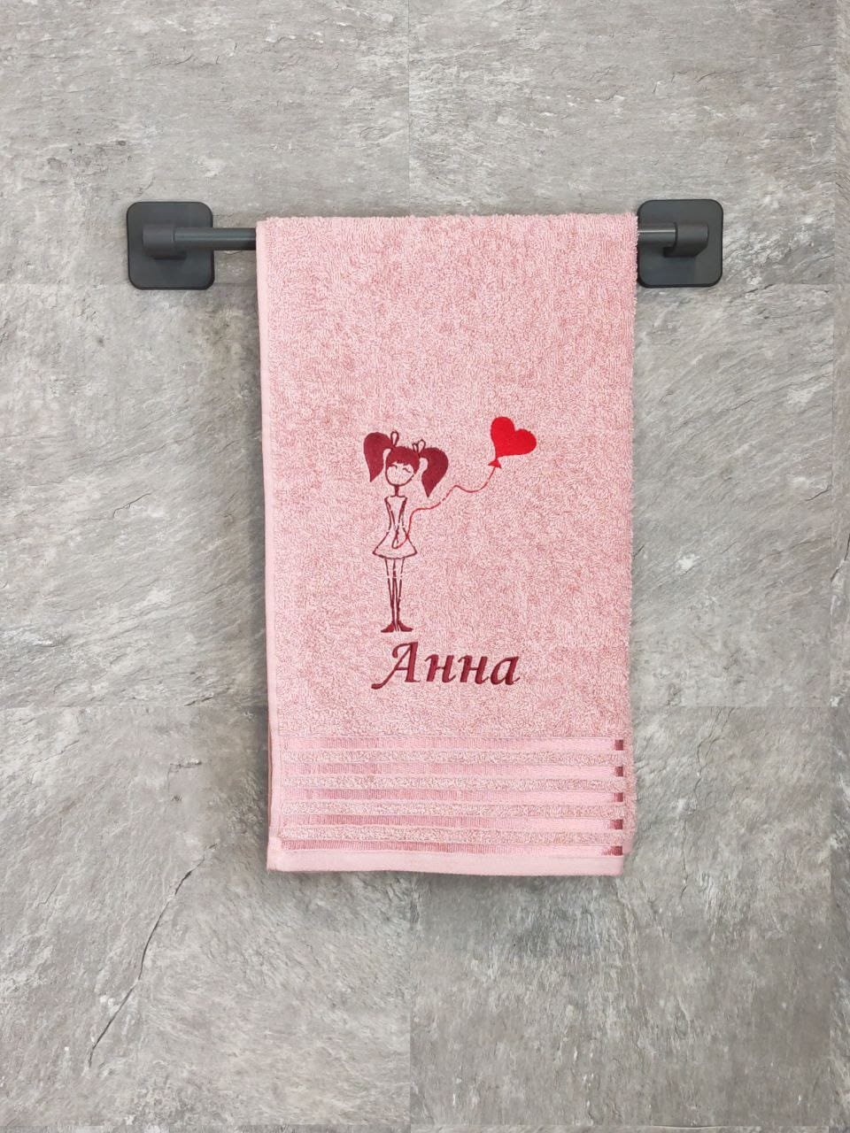 Полотенце с вышивкой 50*90 "Анна" розовое POL/девочка_Анна_роз.полоса