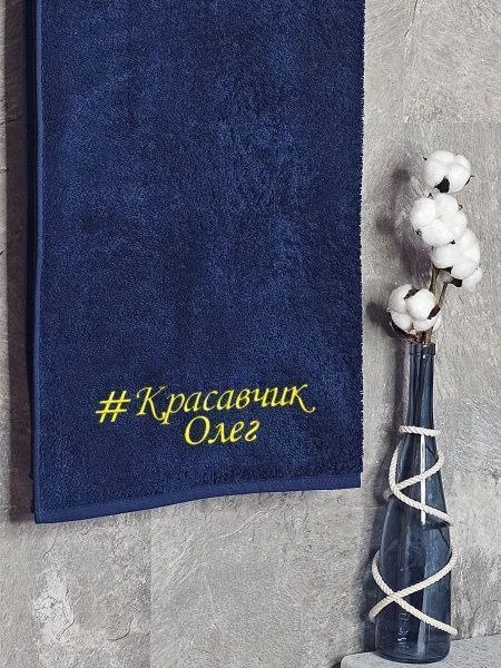 Полотенце с вышивкой 70*140 "красавчик" Олег темно-синее POL/красавчикОлег/3644
