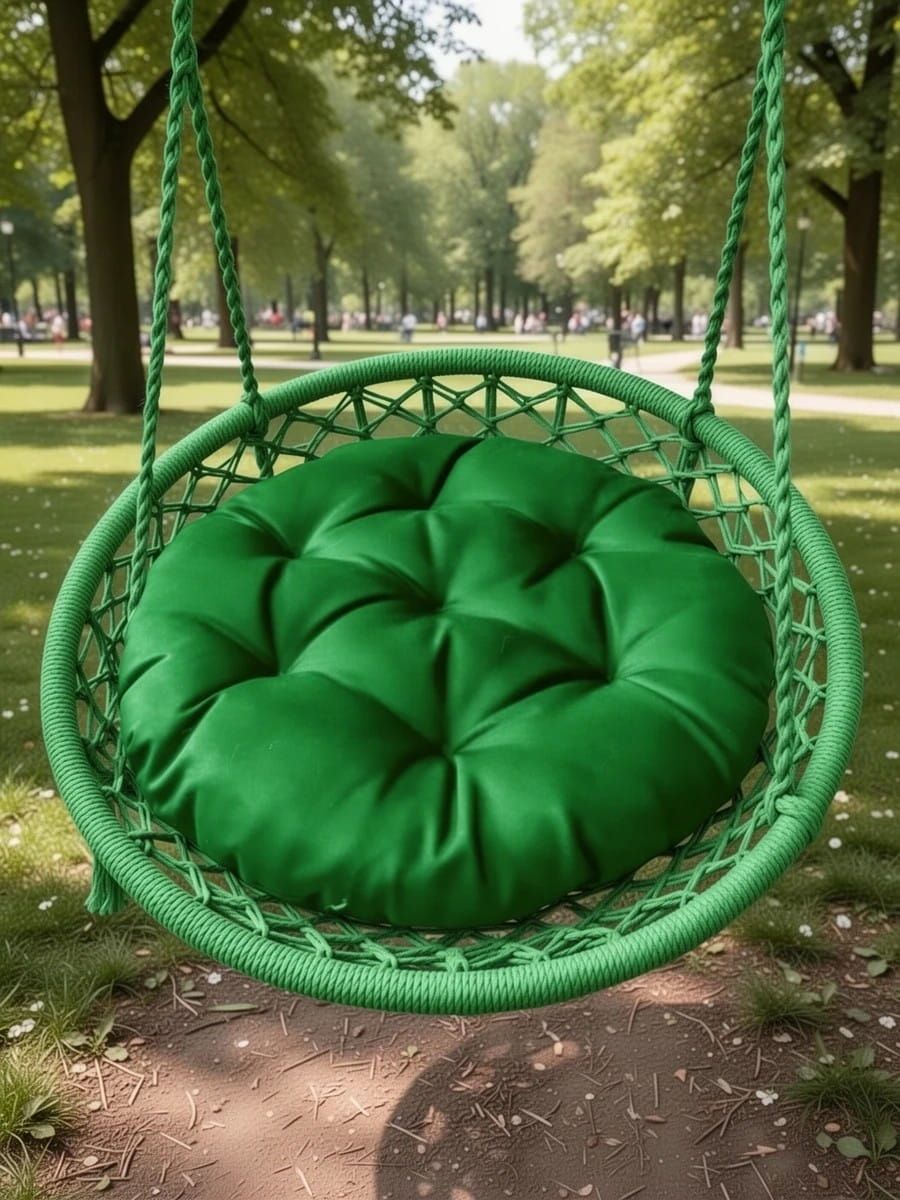 Универсальный размер: 60×60 см — идеально ложится в стандартные посадочные места большинства садовых качелей, кресел-коконов и подвесных кресел.