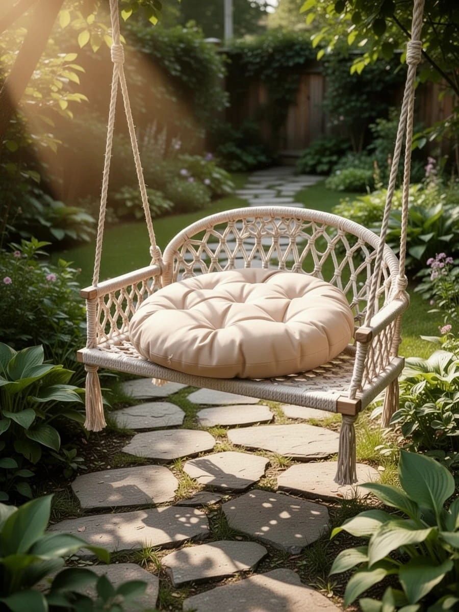 Универсальный размер: 60×60 см — идеально ложится в стандартные посадочные места большинства садовых качелей, кресел-коконов и подвесных кресел.