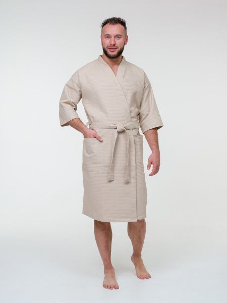 Халат достаточно легкий, а мелкие квадратики вафельной ткани создают воздушную подушку между халатом и кожей, за счет чего сохраняется комфортная температура тела, а после водных процедур кожа быстрее высыхает.