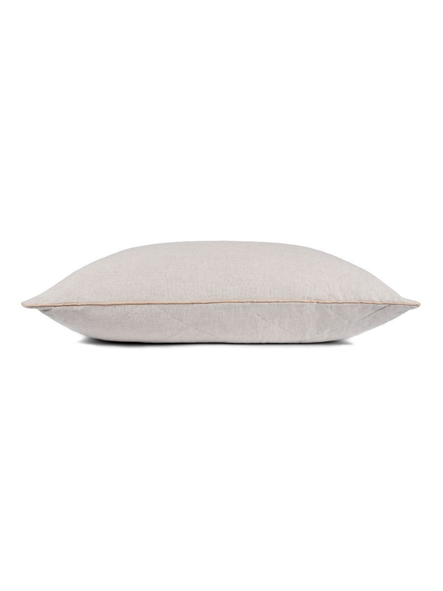 Подушка выполнена в уникальном чехле, который представляет собой натуральный лен, простеганный верблюжьей шерстью. Благодаря такой стёжке жёсткая гречишная подушка стала теплее и мягче на поверхности.