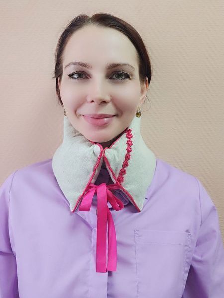Воротник «ВИШНЕВЫЕ ОБЪЯТИЯ» с вишневой косточкой используется как грелка, и хорошо подходит для прогревания шеи при симптомах остеохондроза, отлично расслабляет и избавляет от боли, а приятный аромат вишни увеличит эффект релаксации. Для нагрева подушки, ее необходимо положить в микроволновую печь на 2-3 минуты, после этого приложить к больному месту и зафиксировать с помощью тканевых завязок.