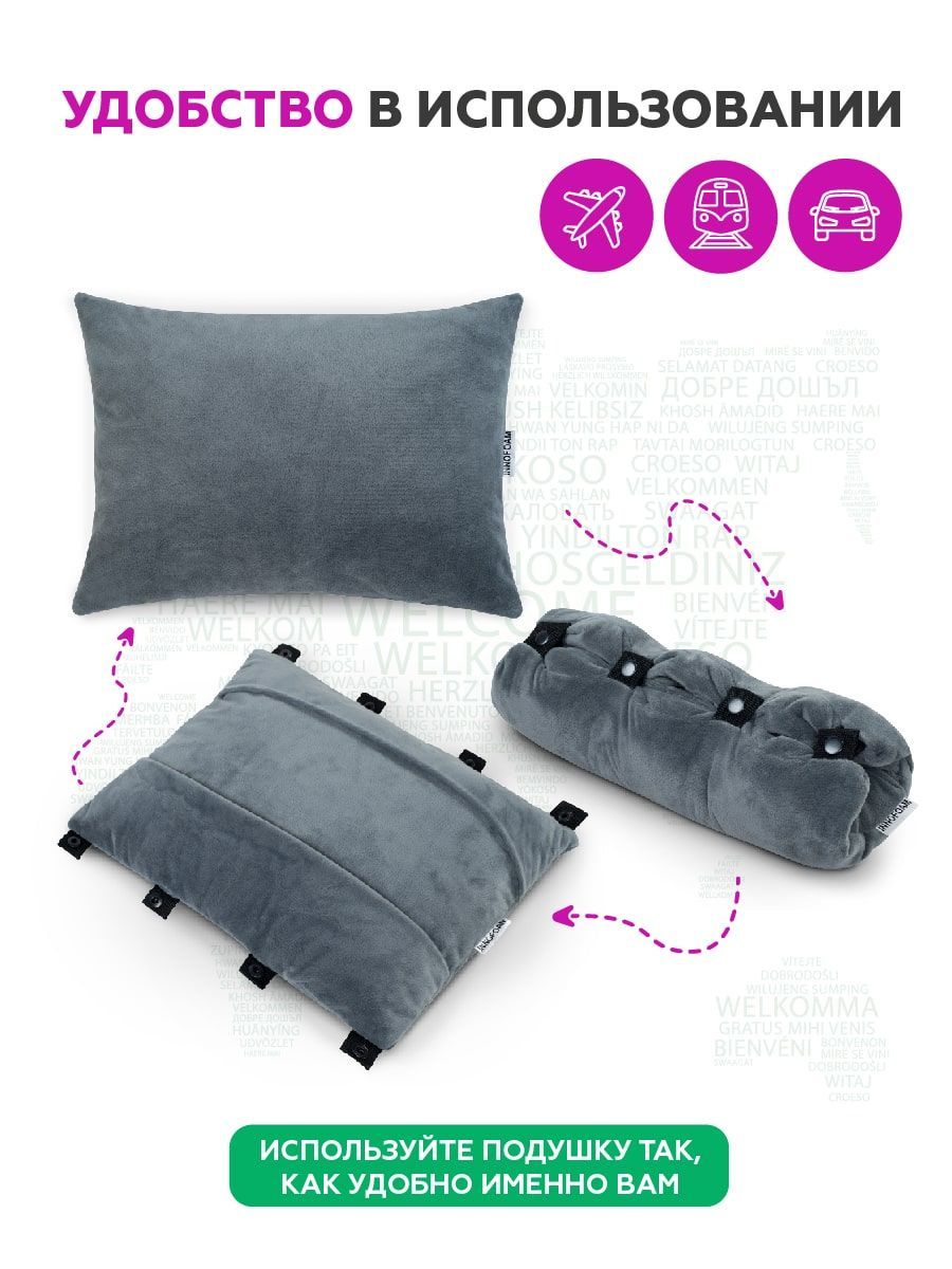 INNOFOAM TRAVELUX EXTRIM 8 IN 1 легко трансформируется в любую форму, благодаря застежкам и регуляторам. После пробуждения подушку можно легко свернуть, положить в чехол, убрать в сумку или рюкзак.