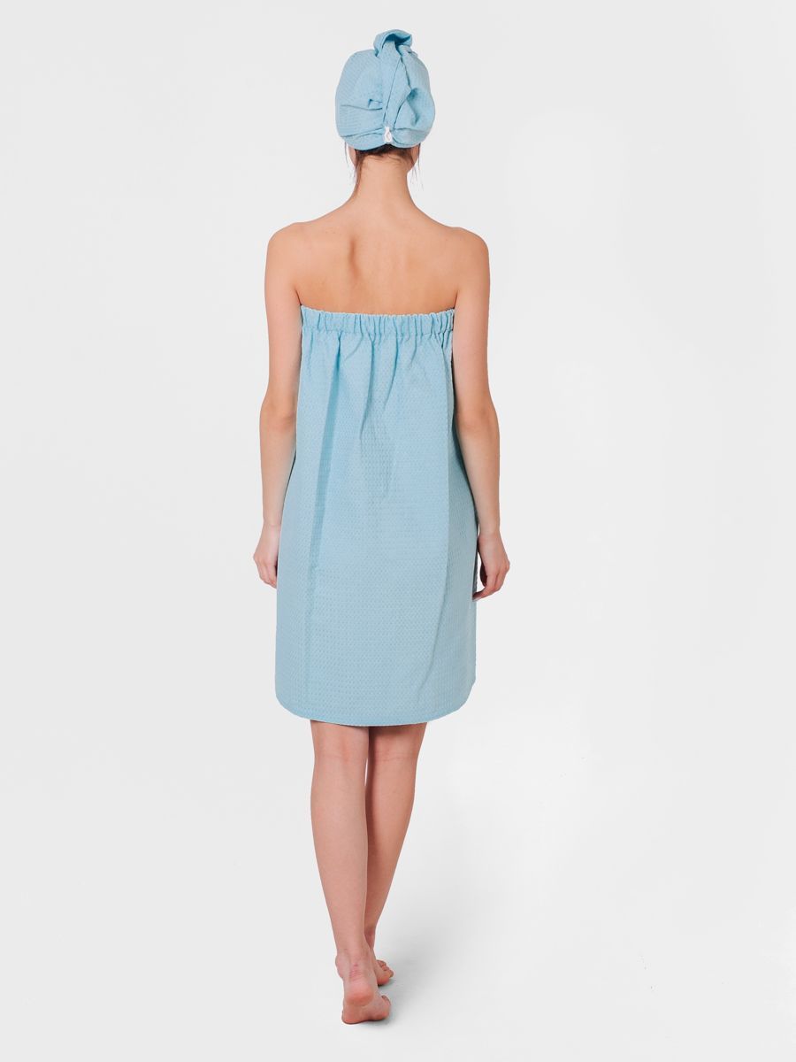 Вафельный набор для бани — отличная альтернатива классическому  полотенцу, в которое оборачивают тело. Парео не спадает и не стесняет движений , а удобная вафельная чалма надежно защищает волосы от негативного воздействия повышенной влажности, перепада температур и косметики. Чалма станет вашим стильным аксессуаром в сауне, SPA-салоне и дома, с ее помощью вы сможете быстро и деликатно подсушить волосы и при этом общаться или заниматься другими делами.
