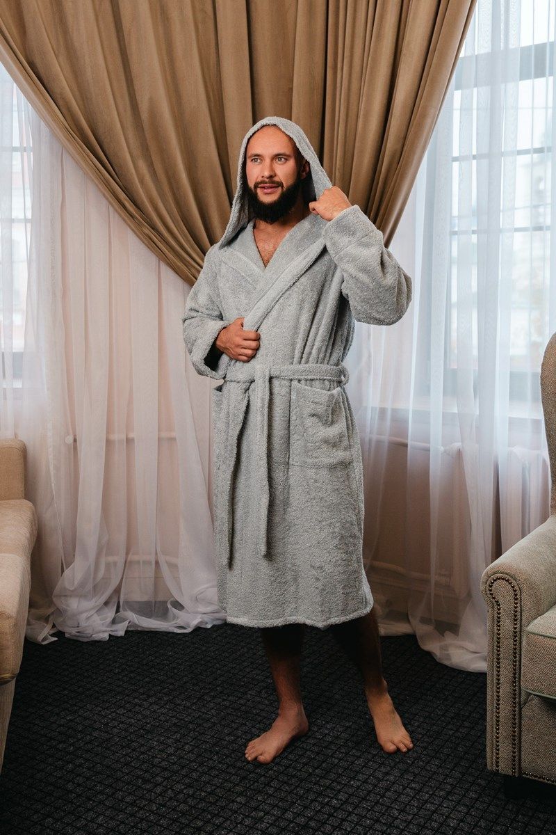 Махровая ткань из 100% хлопка идеально согревает и быстро высушивает кожу после водных процедур. Капюшон убережет шею и голову от сквозняков и резкой смене внешней температуры, особенно актуально при посещении бани в холодное время года.