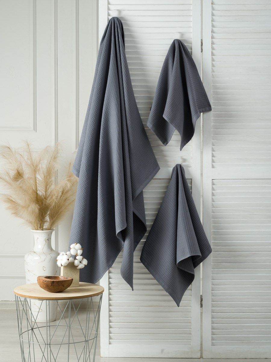 Полотенце вафельное серое
