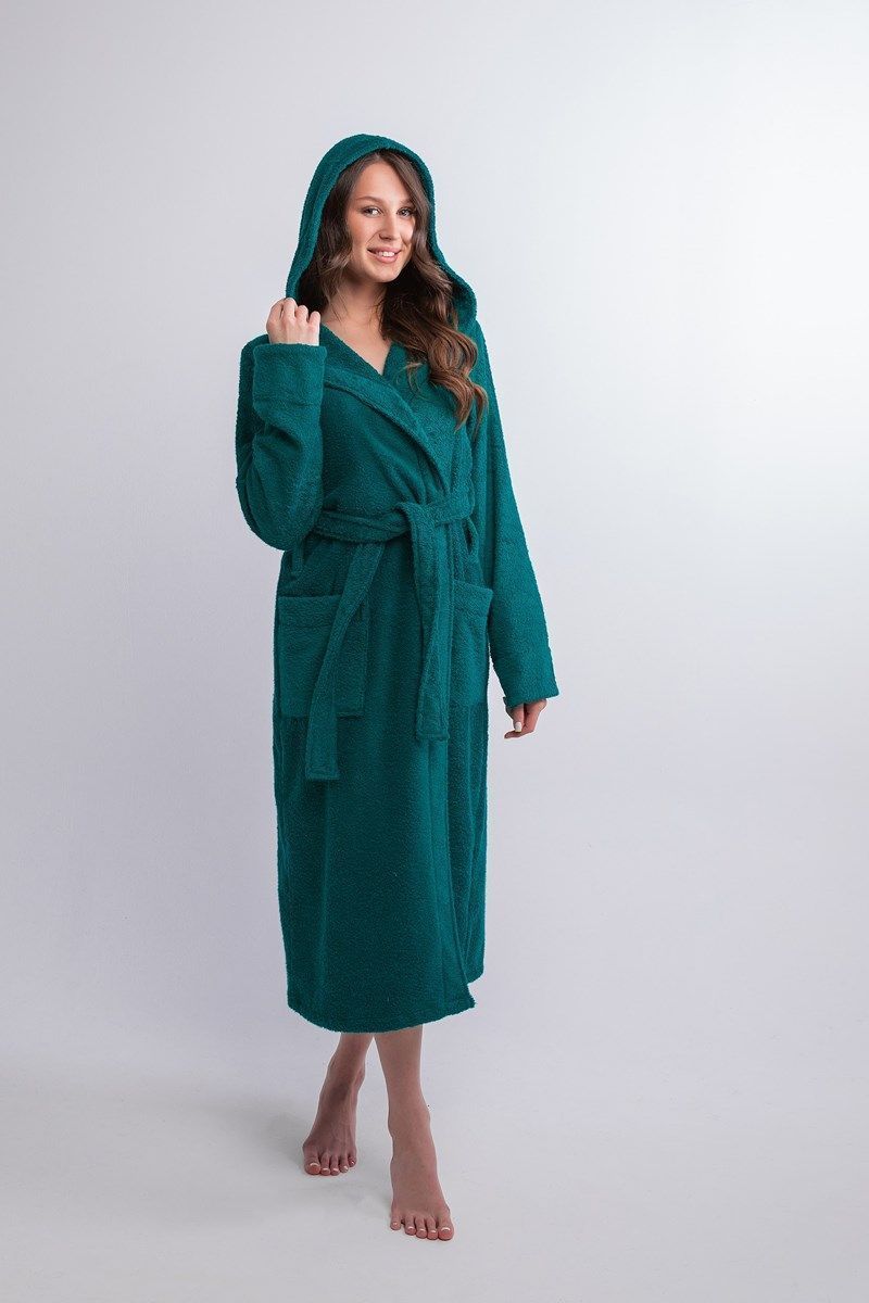 Женский махровый халат — это удобная домашняя одежда, которая подарит комфорт после трудового дня. Мягкая ткань из 100% хлопка делает банный халат с капюшоном невероятно приятным к телу, он отлично впитывает влагу, быстро сохнет и не теряет насыщенного цвета даже после многократных стирок.