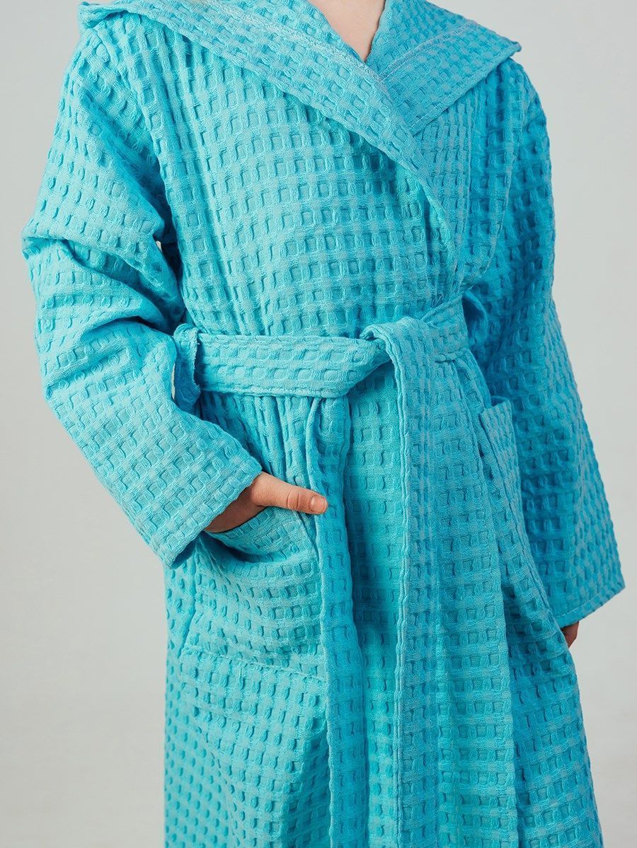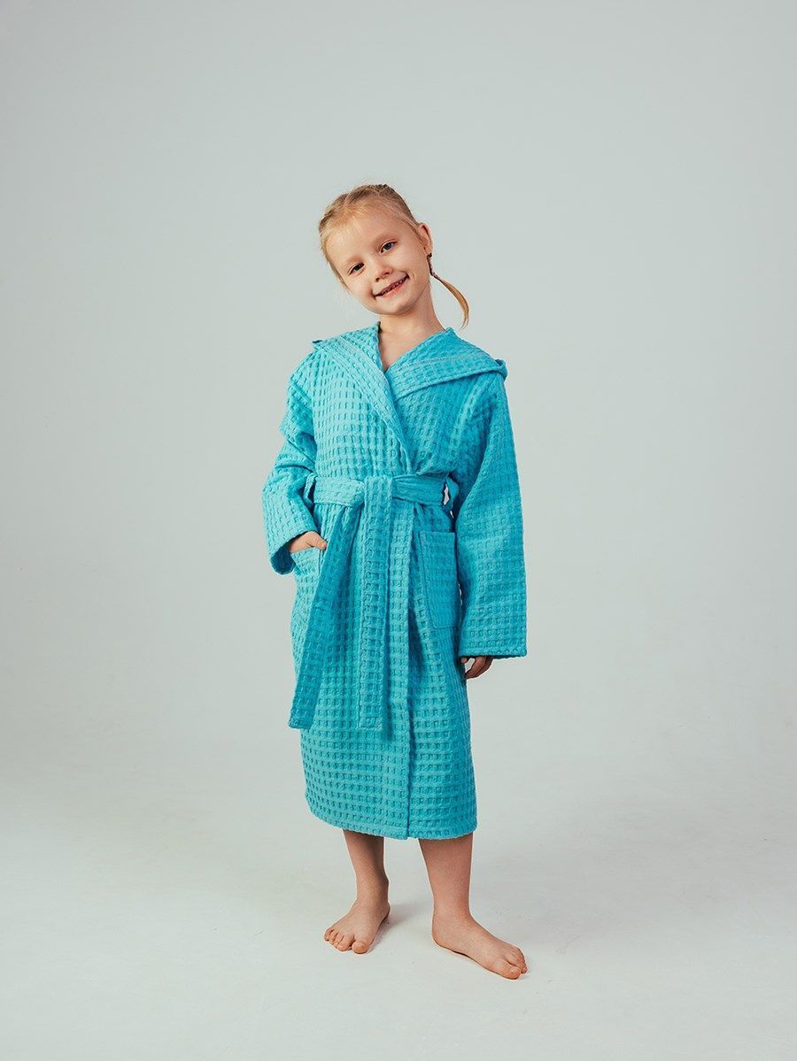 Вафельный халатик для детей, выполненный из натурального материала – 100% хлопка с карманом, удобен и универсален.  Ткань не вызывает аллергии и раздражения кожи, прекрасно пропускает воздух,  быстро впитывает влагу и так же мгновенно сохнет.   Форма халата с запахом и широким поясом позволит использовать его долгое время, несмотря на быстрый рост ребенка. Поэтому для домашнего ухода за детьми вафельный халат является одной из самых удобных и практичных вещей.   Халат из вафельной ткани легкий и практичный, благодаря натуральному составу ткани сохраняется комфортная температура тела,  идеальная для жаркого лета.   После любых водных процедур, вафельный халатик создаст приятную прохладу и быстро высушит тело, он свободный и приятный к детской коже.