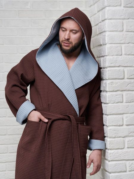 Халат достаточно легкий, а мелкие квадратики вафельной ткани создают воздушную подушку между халатом и кожей, за счет чего сохраняется комфортная температура тела, а после водных процедур кожа быстрее высыхает.